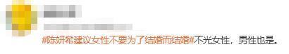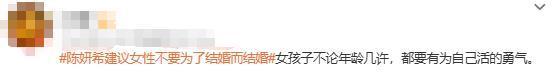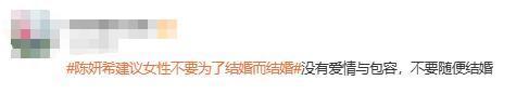 刚刚,#陈妍希建议女性不要为了结婚而结婚# 等话题登上微博热搜。